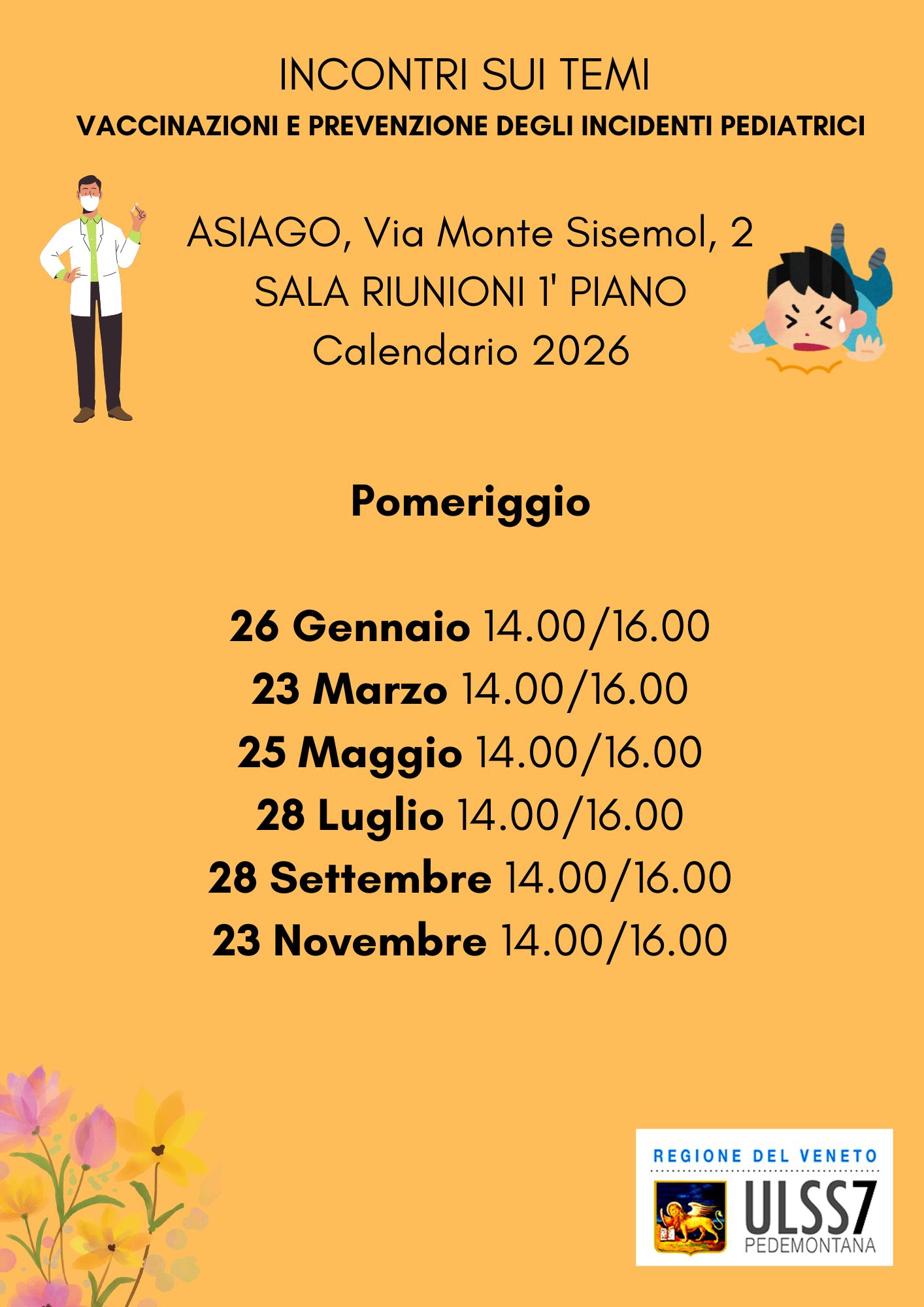 "VACCINAZIONI e INCIDENTI PEDIATRICI" UN AIUTO TRA VERE E FALSE INFORMAZIONI Incontri con assistente sanitario: |