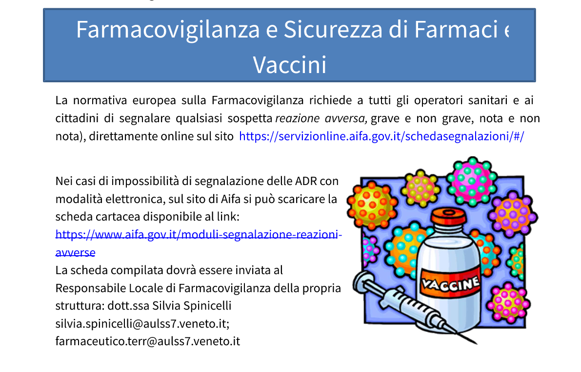 Farmacovigilanza e sicurezza di farmaci e vaccini